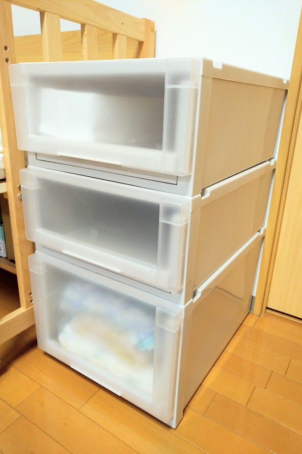 『衣装ケース』ならではのメリットは、1つ1つバラして使うことが出来るので、今後違うものを他の部屋で収納するのに使っても良いなと考えています。